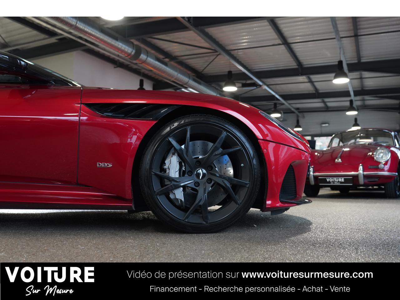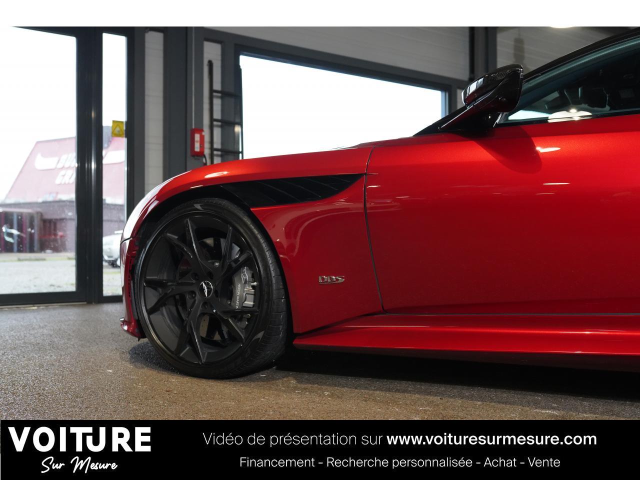 Voiture Sur Mesure vous propose cette Aston Martin DBS Superleggera de septembre 2019, affichant 31 000 km et présentée dans une configuration rare Hyper Red AML avec intérieur en cuir bleu et packs carbone.