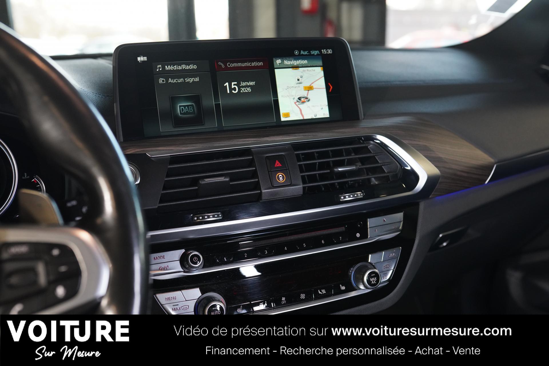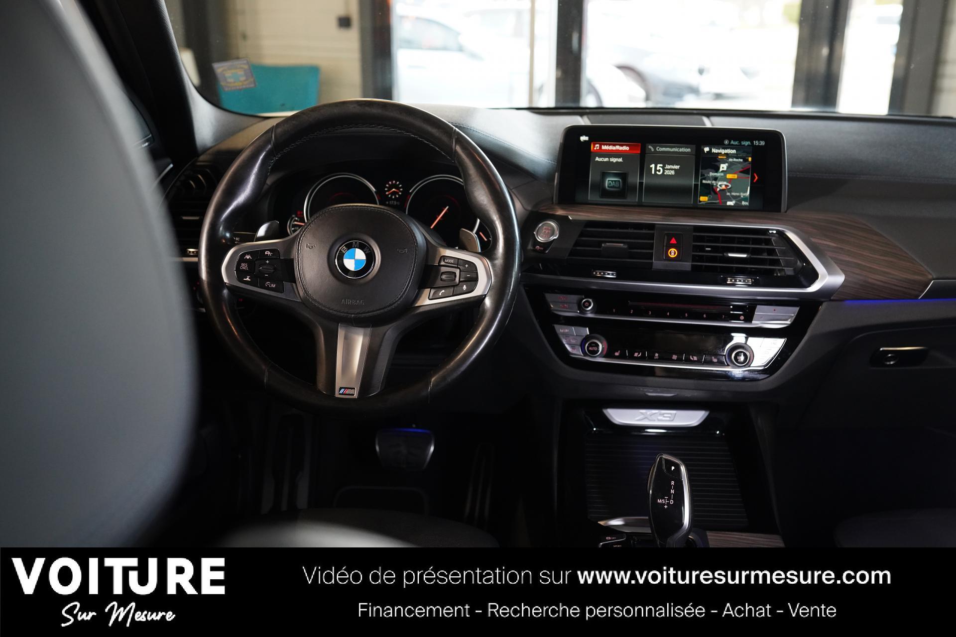 Nous vous proposons cette BMW X3 au prix de 39 990 €, celle-ci a au compteur 94500 km. Elle a été immatriculée le 14-09-2018 et dispose d'une puissance de 265ch din.