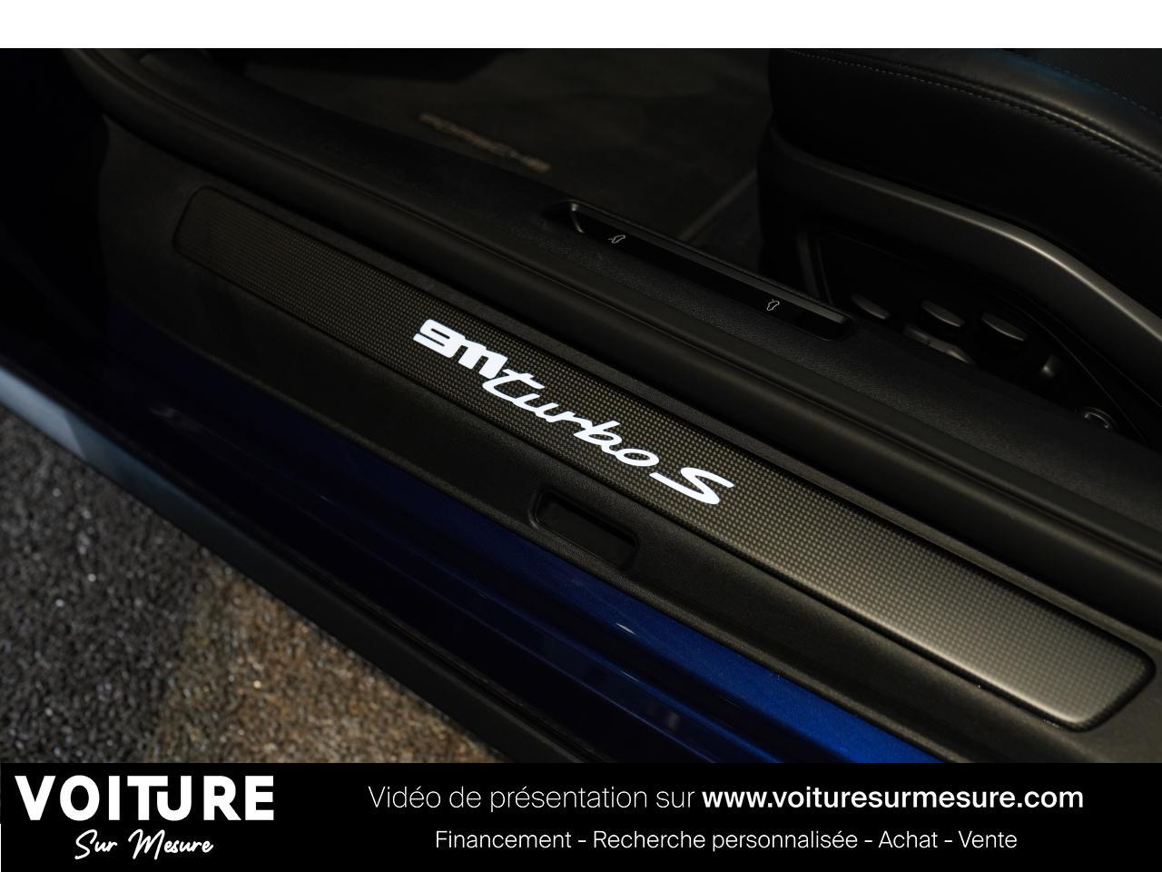 Mise en circulation en juillet 2020, cette superbe Porsche 992 Turbo S se présente dans une élégante configuration avec sa peinture Bleu Gentiane métallisée. Elle bénéficie d'une garantie Porsche Approved valable jusqu’en juillet 2027, offrant une tranquillité d’esprit totale à son futur propriétaire. Les relevés d'épaisseur de peintures indiquent une couche uniforme et d'une épaisseur d'origine.